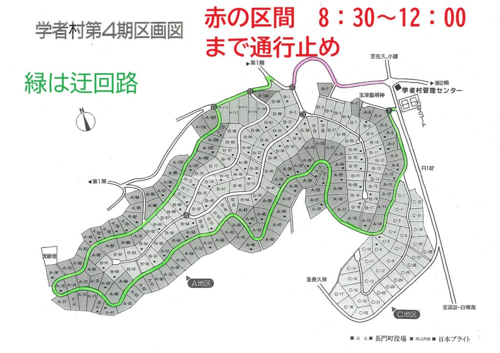 学者村第1期 通行止めのお知らせ 投稿日: 2025年9月28日 投稿者: yanagisawa 令和7年9月29日(月)下記のとおり通行止めとなります。終わり次第、解除いたしますのでご協力をお願いします。