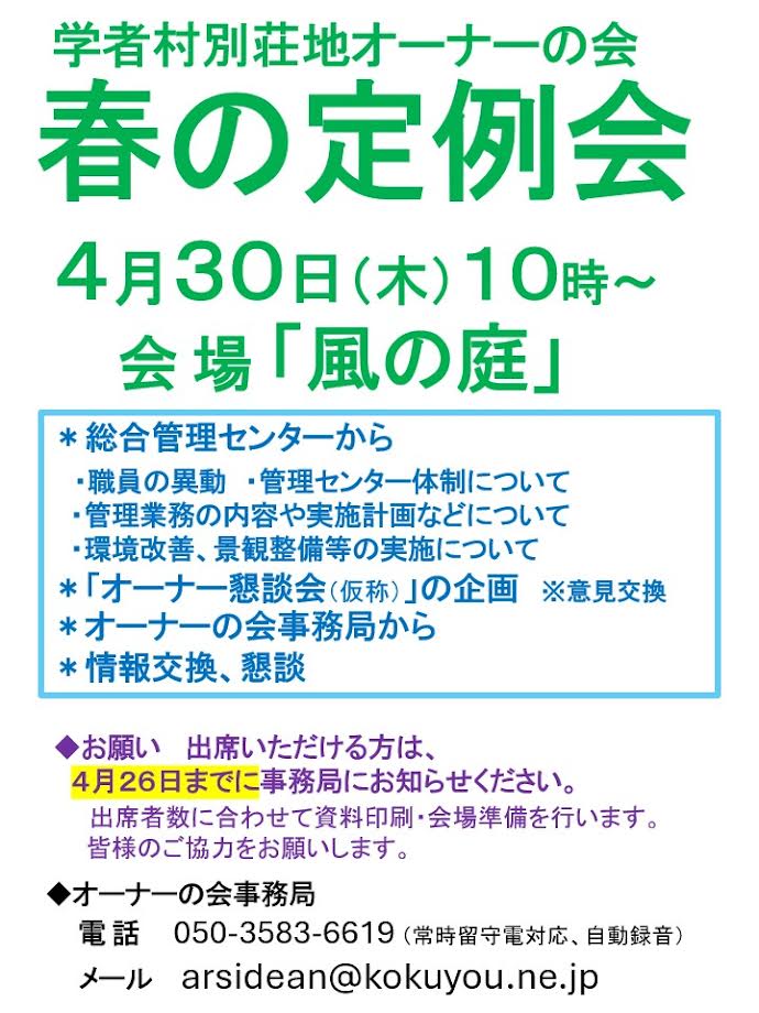 学者村別荘地オーナーの会 【春の定例会】のご案内